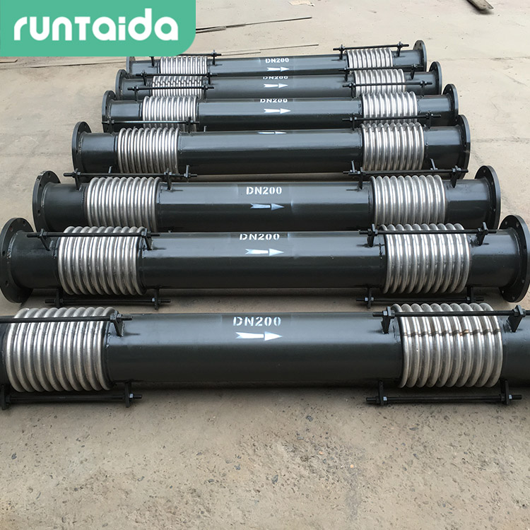 金屬膨脹節由兩段或三段波紋管,短中間接管及長拉桿等零件構成,結構簡單。長拉桿不是承力構件。