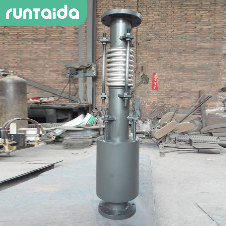 軸向復(fù)式波紋補(bǔ)償器由兩個或多個波紋管串聯(lián)在一起,在波紋管外有能夠保證波紋管在軸向移動時不致失穩(wěn)的外罩。這種膨脹節(jié)可吸收較大的軸向位移。對于這類波數(shù)較多的膨脹節(jié)而言,外罩即是一種保護(hù)裝置以保證膨脹節(jié)在運(yùn)輸或安裝過程中不損壞波紋管。而且,又保證了膨脹節(jié)工作時的穩(wěn)定性,也是由于外罩的存在,對于膨脹節(jié)的保溫操作也變得簡單易行。
